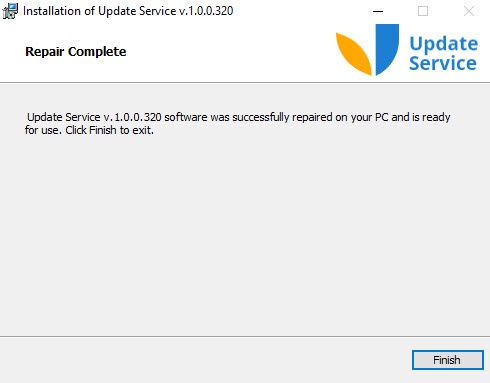 - The Repair Complete window opens if the repairing process is successful. Click the Finish button.