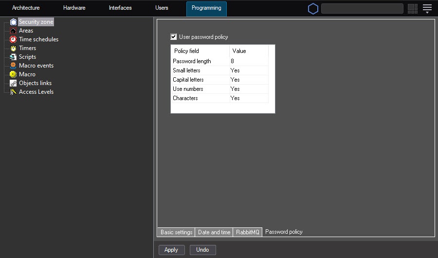 Configuring the password policy is complete.