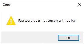 If you create the user account before changing the password policy and its password doesn't meet the new requirements, you must not change it.