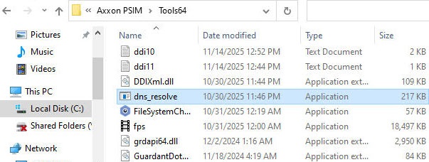 The dns_resolve.exe console utility is used to receive the list of all IP addresses that are available on this computer with the installed Axxon PSIM.