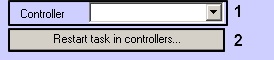 To assign tasks to the controllers, select the required task from the drop-down list (1) and click the Restart task in controllers...button (2).