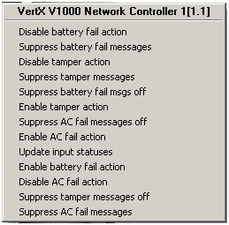 To manage a V1000 controller, go to the Map window and use the menu of the relevant VertX V1000 Network Controller object.