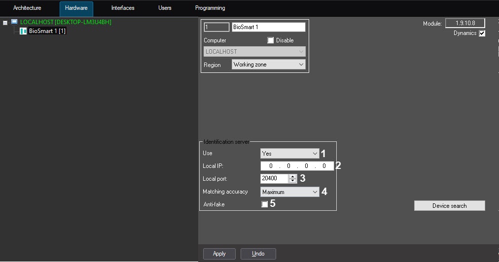 - In the Local port field (3), select the local port number of the Axxon PSIM Biometric Identification server.
