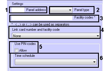 Select format of linking access card number and organization code (facility code) from the corresponding dropdown list (4).