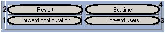 To restart controller click Restart (2).- To register access cards of users click Forward users (3).
