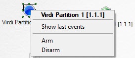 The Virdi Partition is managed in the Map interactive window using the Virdi Partition object function menu: