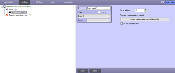 - Create the Esser Panel object on the basis of the Esser object. The Esser Panel object corresponds to an Esser FSA central panel.