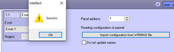 Export should be done for each integrated control panel, even if they work together in the EsserNET network. Successful import will be confirmed by Success message.