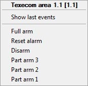 The Texecom area is managed in the Map interactive window using the Texecom area functional menu.