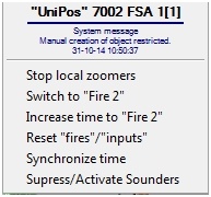 Controlling the UniPos 7002 FSA device is carried out in Map interactive window using feature menu of UniPos 7002 FSA object.