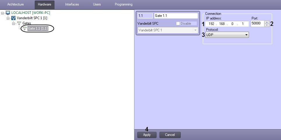 - Go to the Gate object setup panel, which is created on the base of the Vanderbilt SPC object.