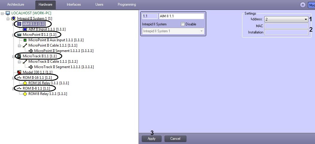 - The value specified while auto creating the objects tree is set In the Address drop-down list (1). To change the controller address select the new value from the Address drop-down list.