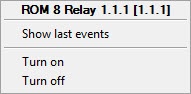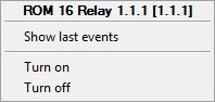 The ROM 8 and ROM 16 relays are managed in the Map interactive window using the ROM 8 and ROM 16 objects functional menu: