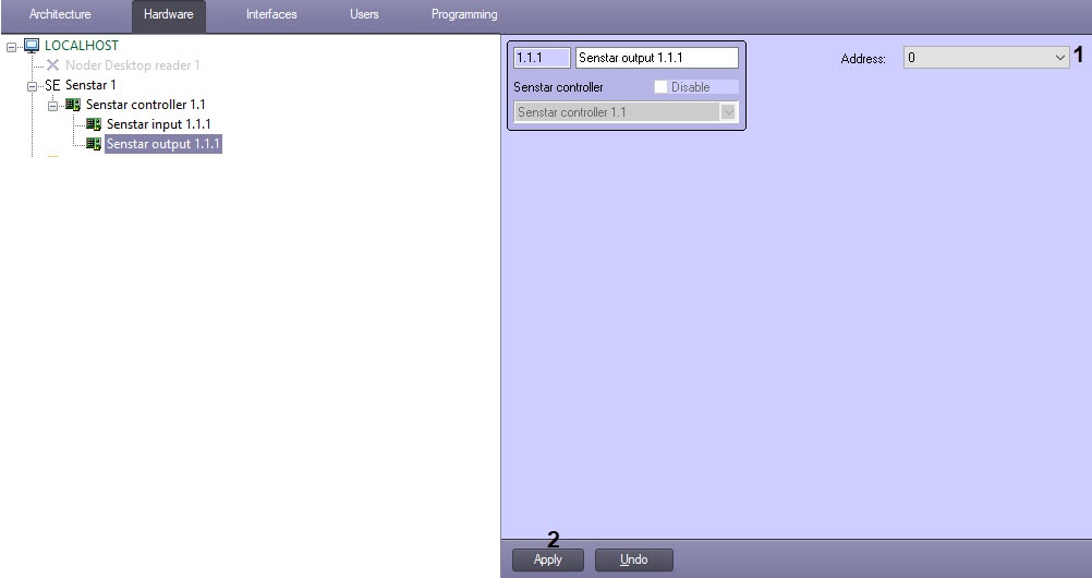 - Go to the settings panel of the Senstar output object, which is created on the basis of the Senstar controller object.