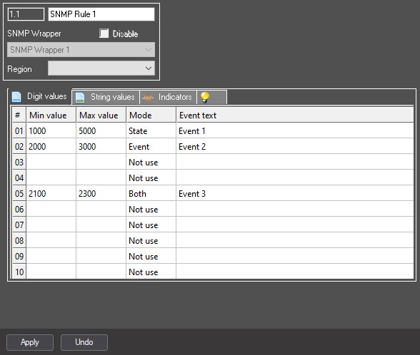 You can set conditions for channels with digit values on the Digit values tab: