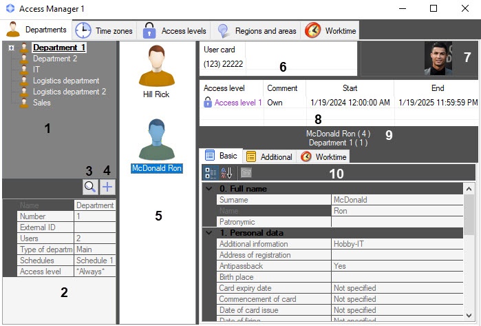 Setting and editing department parameters is described Working with departments in the Access Manager software module