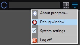 To open the Debug window, select the Debug window item in the menu of the main control panel in Axxon PSIM.