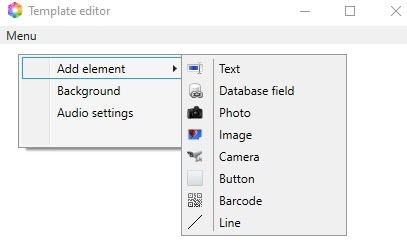 To add a new element to the template editor click the right mouse button in any empty space within the template and select the Add element item in the menu.