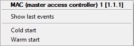 The Bosch BIS MAC (master access controller) is managed in the Map interactive window using the MAC (master access controller) object function menu.