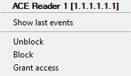 The Bosch BIS reader is managed in the Map interactive window using the ACE Reader object function menu.