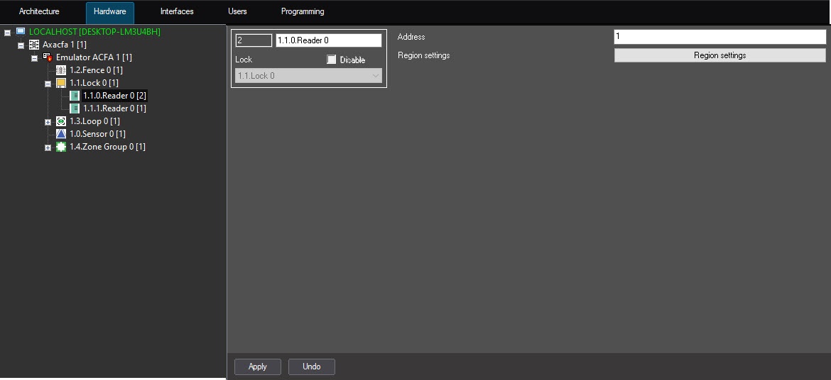 - Go to the settings panel of the Reader object that is created automatically when you download the configuration on the basis of the Lock object.