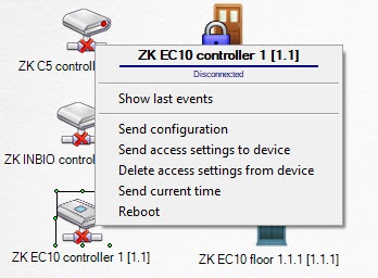 You can manage the ZK EC10 panel in the Map interactive window using the function menu of the ZK EC10 controller object.