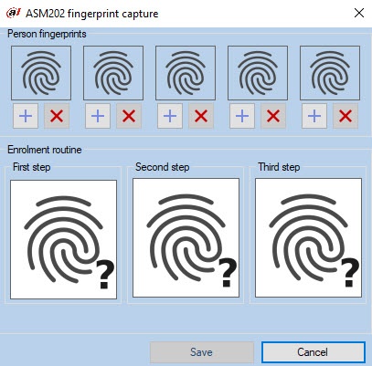 As a result, the ASM202 fingerprint capture window will open. - Add fingerprints one by one by clicking the