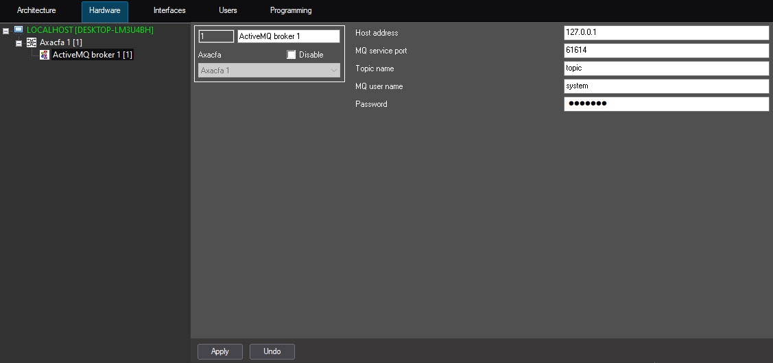 To work with the ActiveMQ Broker integration module, you must install and configure the AxACFA feature. For more details, see Connecting and configuring the AxACFA feature.
