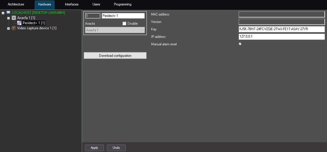 - Create the Peridect+ parent object on the basis of the Axacfa object on the Hardware tab of the System settings dialog window.
