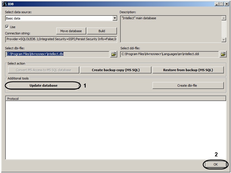 - Open the idb.exe utility located in ACFA Intellect installation directory.