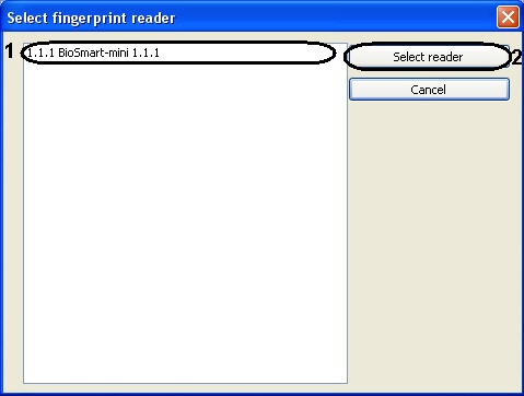 - Select an available fingerprint reader and click the Select reader button (1-2).