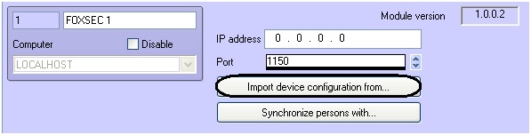 - Click the Import device configuration from… button on the FOXSEC settings panel.