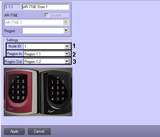 2. From the Node ID drop-down list select the ID of AR-716E Door object (1).