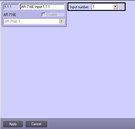 - From the Input number drop-down list select the number of AR-716E Input object (1).