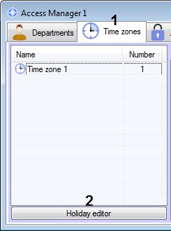 1. Go to the Time zones tab of the Access manager window.
