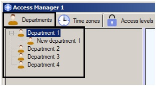 Departments are organized in hierarchy structure in the ACFA Intellect software package. Tree of departments is displayed in the Departments tab of the Access Manager window.