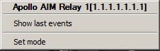 To select the working mode of relay select the Set mode command in the Apollo AIM Relay object.