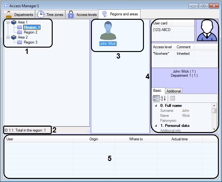 1 | Areas and regions tree | Hierarchy structure of created areas and regions in the system – see Creating, editing and deleting Area and Region objects |