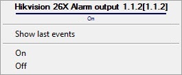 Managing a Hikvision alarm output is described by example of the Hikvision 26X controller alarm output. Managing other Hikvision controllers alarm outputs is performed in the same way.