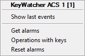 The KeyWatcher ACS is managed in the Map interactive window using the KeyWatcher ACS object functional menu: