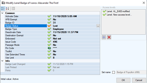 Change the values in the same way as when creating the badge (the icons will turn from green to orange as you change the values). When finished, click OK to save changes.