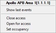 The APB Area control of the ApolloSDK v.2 integration module is performed in the Map interactive window using the Apollo APB Area  object's functional menu.