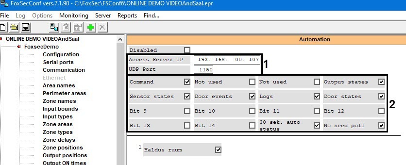 Set the IP address and port of the ACFA Intellect server (1).