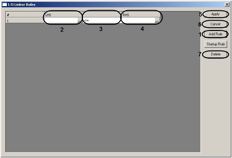 1.  In the I/O Linker Rules window, click Add Rule (1).