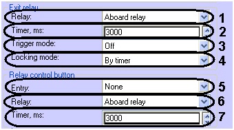 - In the Timer field specify time (in milliseconds) of active state of the relay after its triggering (2).