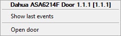 The Dahua Door is managed in the Map interactive window using the Dahua Door object functional menu.