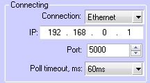 4. From the Poll timeout, ms: drop-down list select the time period in milliseconds between two consecutive polls of the device connection (3).