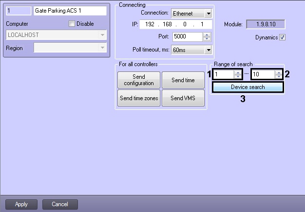 This launches an automatic search for hardware-configured and connected Gate controllers. Objects corresponding to found controllers are automatically created in the object tree under the relevant Gate ACS object.