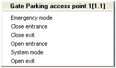 To manage a Gate controller, go to the Map window and use the menu of the relevant Gate Parking controller object.