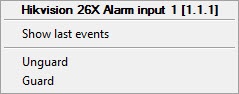 Managing a Hikvision alarm input is described by example of the Hikvision 26X controller's alarm input. Managing other Hikvision controller's alarm inputs is performed in the same way.